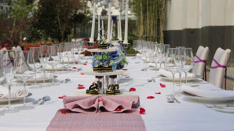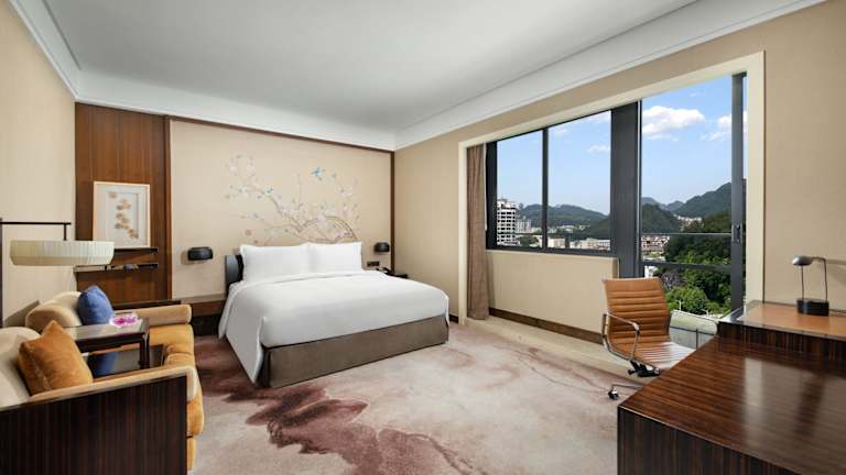 Im Restaurant Yun Hai werden chinesische Gerichte serviert, während das Riverside Cafe internationale Küche anbietet. Weitere gastronomische Einrichtungen sind die Lobby Lounge und die Hui Lounge. Der Zimmerservice steht den Gästen rund um die Uhr zur Verfügung.