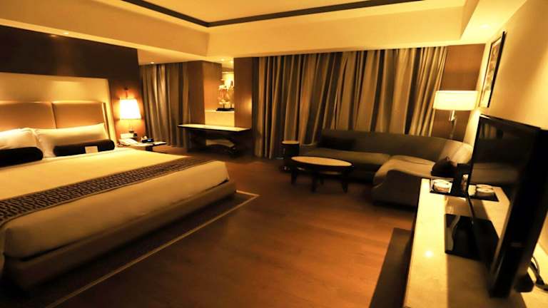 Die Zimmer sind modern und schallisoliert und verfügen über Klimaanlage, Heizung, ein Doppelbett oder Kingsize-Bett, eine Minibar, einen Safe sowie einen Schreibtisch. Zur Ausstattung gehören auch ein Kühlschrank, eine Tee-/Kaffeemaschine und ein TV-Gerät. Die Badezimmer sind mit Dusche und Badewanne ausgestattet, zusätzlich gibt es Haartrockner und Bademäntel. Es sind barrierefreie Zimmer mit rollstuhlgerechtem Badezimmer verfügbar.