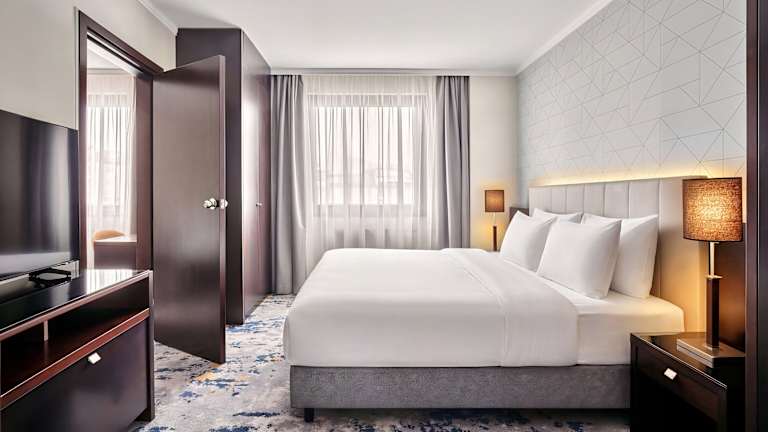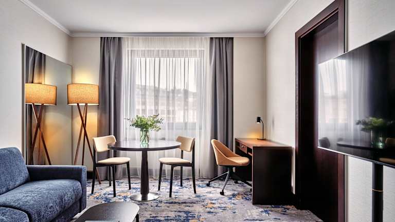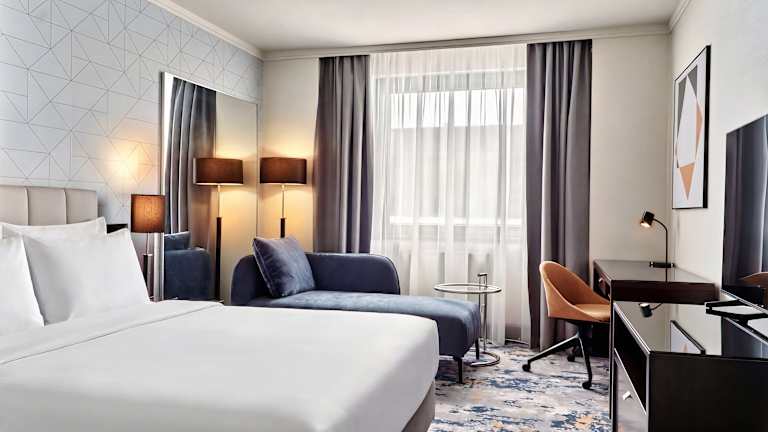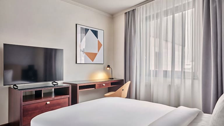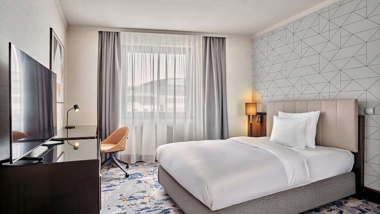 Die Zimmer sind mit einer Klimaanlage, Teppichböden, einem Doppelbett oder Sofabett, einem Schreibtisch, einem Safe, einer Minibar und einem Kühlschrank ausgestattet. Jedes Zimmer verfügt über ein Badezimmer mit Dusche und Badewanne sowie über Haartrockner und Kosmetikartikel. Zudem sind rollstuhlgerechte Zimmer und Familienzimmer verfügbar.