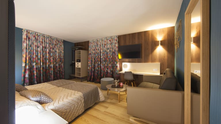 Die klimatisierten Zimmer im Hotel Cuco verfügen über ein Sofabett und die meisten Zimmer bieten eine Terrasse. Zur Ausstattung gehören zudem ein Safe, ein Telefon mit Direktwahl, ein TV-Gerät sowie W-LAN (ohne Gebühr). Die Badezimmer sind mit Dusche, Badewanne oder Whirlwanne ausgestattet. Es stehen Familien- und Nichtraucherzimmer zur Verfügung.