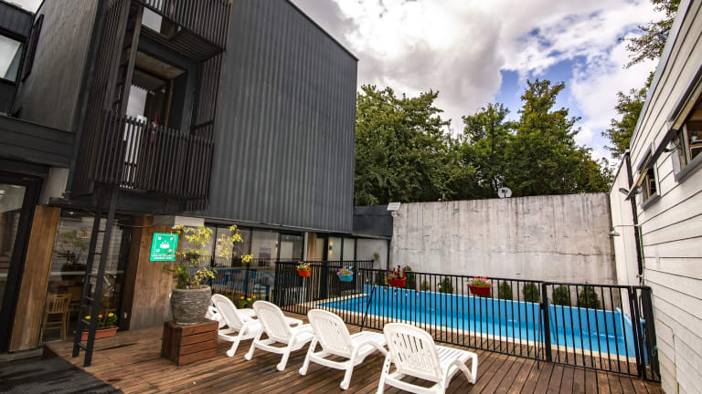 Das Hotel Cumbres del Sur befindet sich in idealer Lage im Stadtzentrum von Pucón. Nur 850 Meter entfernt liegt der wunderschöne Villarrica-See, der zu Spaziergängen und anderen Freizeitaktivitäten einlädt. Die Hauptstraße mit ihren Geschäften, Restaurants und Cafés ist nur einen Block entfernt. In der Umgebung gibt es auch verschiedene heiße Quellen, die in nur 25 Minuten mit dem Auto erreichbar sind. Der Villarrica Nationalpark, bekannt für seine atemberaubende Natur, liegt etwa 5 km vom Hotel entfernt.