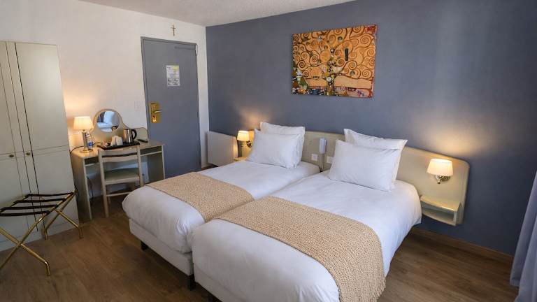 Das Hotel D'Espagne hat eine zentrale Lage in Lourdes, lediglich 800 Meter von der Basilika der Hl. Jungfrau Maria entfernt. Der Bahnhof Lourdes befindet sich 1,3 Kilometer distanziert. Der Flughafen Lourdes ist der nächstgelegene Flughafen in 10 Kilometer Entfernung.