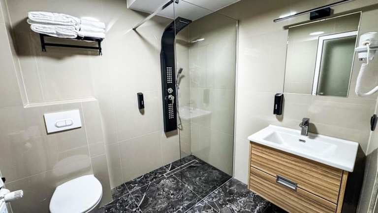 Die Zimmer in der Unterkunft sind mit einem Schreibtisch, einem Flachbild-TV, Klimaanlage und einem eigenen Badezimmer mit einer Dusche und kostenlosen Pflegeprodukten ausgestattet. Einige Zimmer bieten zudem einen Balkon. Ausgestattet sind die Zimmer mit Bettwäsche und Handtüchern.