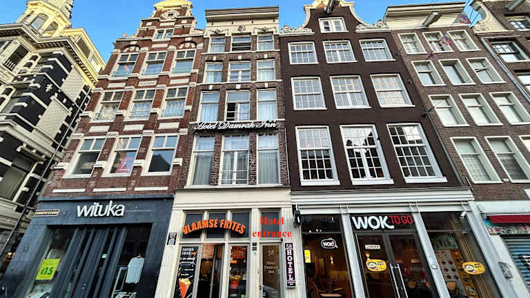 Das Hotel Damrak Inn bietet einfache und funktionale Zimmer mit kostenlosem Wifi. Die Rezeption ist rund um die Uhr besetzt. Das Hotel befindet sich in einem historischen Gebäude ohne Aufzug, was bedeutet, dass die Treppen recht steil sind. Das Hotel ist rauchfrei, LGBT-freundlich und bietet keine Klimaanlage. Ein Schadenersatz von 100 Euro wird bei Ankunft verlangt, der bei einer Abreise zurückerstattet wird, vorbehaltlich einer Prüfung der Unterkunft.