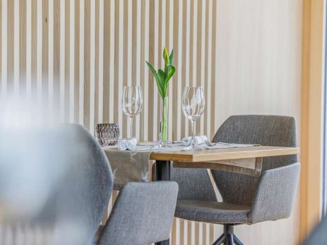 Im Restaurant des Hotels werden traditionelle Vorarlberger Küche sowie internationale Gerichte angeboten. Ein tägliches Frühstücksbuffet sorgt für einen energiegeladenen Start in den Tag. Zudem sind spezielle Speisen für Ernährungsbedürfnisse auf Anfrage erhältlich.