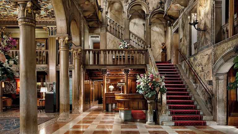 Das legendäre Luxushotel Hotel Danieli besticht durch seine majestätische venezianische Architektur aus dem 14. Jahrhundert und eine einzigartige Empfangshalle aus Marmor und Samt. Die Hotelhalle reflektiert das reiche Kulturerbe Venedigs und gehört zu den schönsten in Europa. Die Unterkunft bietet herzlichen Service, eine Dachterrasse mit spektakulärem Blick auf die Lagune und zahlreiche weitere Annehmlichkeiten. Die Zimmer sind geschmackvoll mit antiken Möbeln und wertvoller Dekoration eingerichtet und bieten eine Mischung aus historischem Flair und modernem Komfort.