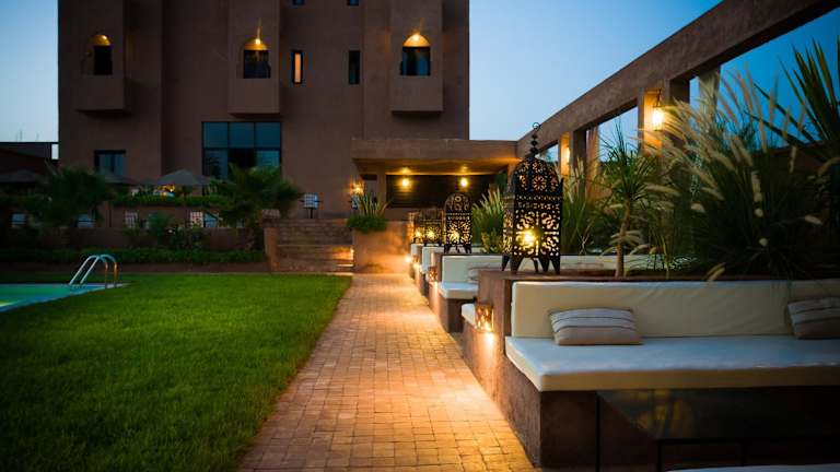 Das reizende Hotel Dar Chamaa liegt in der Stadt Ouarzazate, die als das Tor zur Wüste bekannt ist. Es befindet sich in der Nähe des Atlas-Gebirges und des Flusstals des Draa, von wo aus Gäste die Täler Draa, Dades und Souss sowie die Städte Zagora, Erfoud und Tineghir erkunden können. Das Stadtzentrum von Ouarzazate mit Geschäften, Restaurants und dem Kino-Museum liegt ca. 3 km entfernt. Der Flughafen Ouarzazate ist etwa 4 km entfernt.