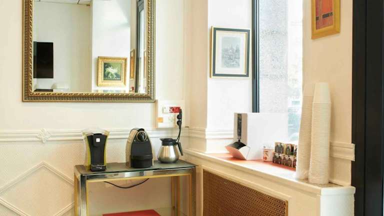 Frühstück wird im Restaurant La Boucherie angeboten, welches sich nebenan befindet. In der Lobby steht teilweise Tee- und Kaffeeservice zur Verfügung. Zudem gibt es ein Café vor Ort.