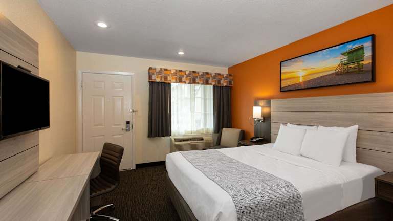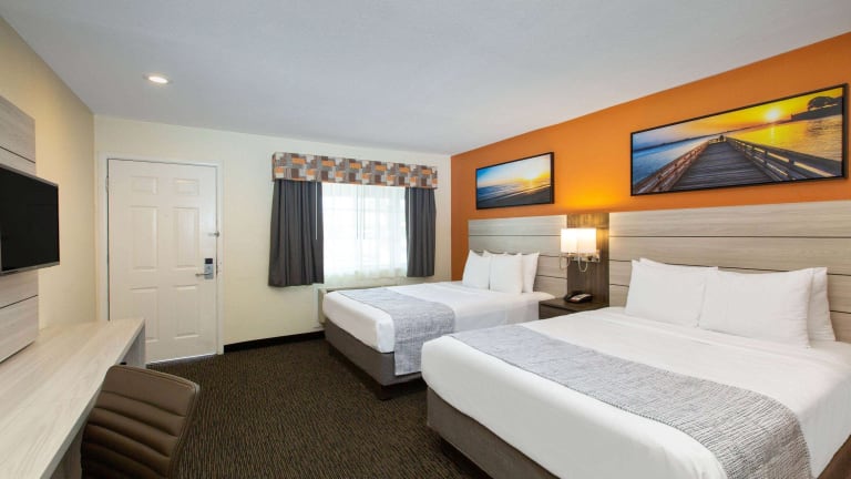 Die Zimmer sind klimatisiert und verfügen über Teppichböden sowie Badezimmer mit Dusche, Badewanne oder Whirlwanne. Jedes Zimmer ist mit einem Doppelbett, einem Queensize-Bett, einem Kingsize-Bett oder einem Sofabett ausgestattet. Zur Ausstattung gehören zudem ein Kühlschrank, eine Mikrowelle, eine Tee-/Kaffeemaschine, ein Schreibtisch sowie ein TV-Gerät mit Kabel- oder Satellitenempfang. Einige Zimmer sind rollstuhlgerecht und bieten barrierefreie Badezimmer.