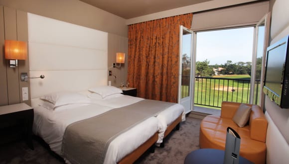 Das Hotel liegt in Anglet in der Nähe von Biarritz und bietet eine der schönsten Lagen an der baskischen Küste. Eine wundervolle Landschaft mit See, Wald und Golfplatz ist in der Umgebung. Der Strand ist nur etwa 300 m entfernt, das Zentrum von Biarritz liegt ca. 4 km entfernt und die mittelalterliche Stadt Bayonne ist etwa 10 km entfernt. Busverbindungen in Richtung Biarritz und Bayonne halten in der Nähe des Hotels.