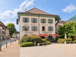 Das Originals City, Hôtel Genève, Albertville Nord in Faverges ist der ideale Ausgangspunkt für einen Besuch der Region. Mit kostenfreien Parkplätzen und WLAN bietet das Hotel seinen Gästen einen angenehmen Aufenthalt. Die Zimmer sind komfortabel eingerichtet und verfügen über Klimaanlage und Sat-TV. Genießen Sie das Frühstücksbuffet im gemütlichen Speisesaal oder auf der Terrasse mit Blick auf die Berge. Das Hotel bietet auch verschiedene Sport- und Kulturaktivitäten wie Skifahren, Golf, Segeln und Tauchen auf dem See von Annecy.