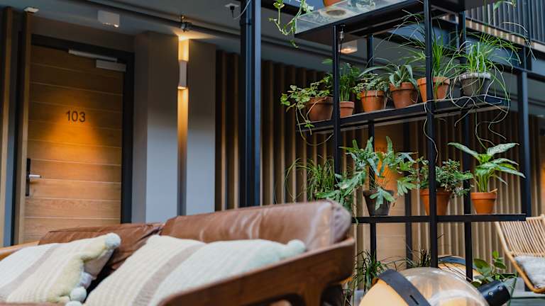 Die Zimmer sind Nichtraucherzimmer und verfügen über eine Klimaanlage, WLAN sowie einen Flachbild-TV. Zur Ausstattung gehören auch eine Espressomaschine, ein Wasserkocher, ein Schreibtisch und ein Safe. Die Comfort Rooms bieten Blick auf den Innenhof oder die Stadt und beinhalten eine Regendusche. Das Indoor Room hat zusätzlich eine Badewanne.