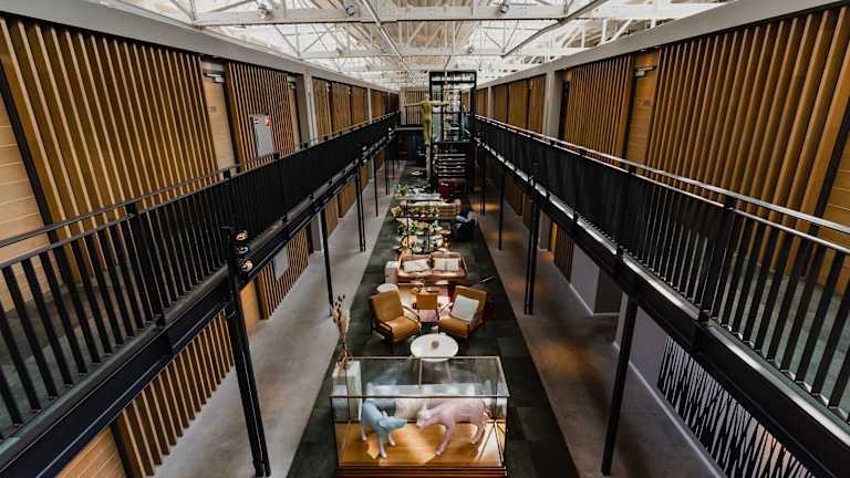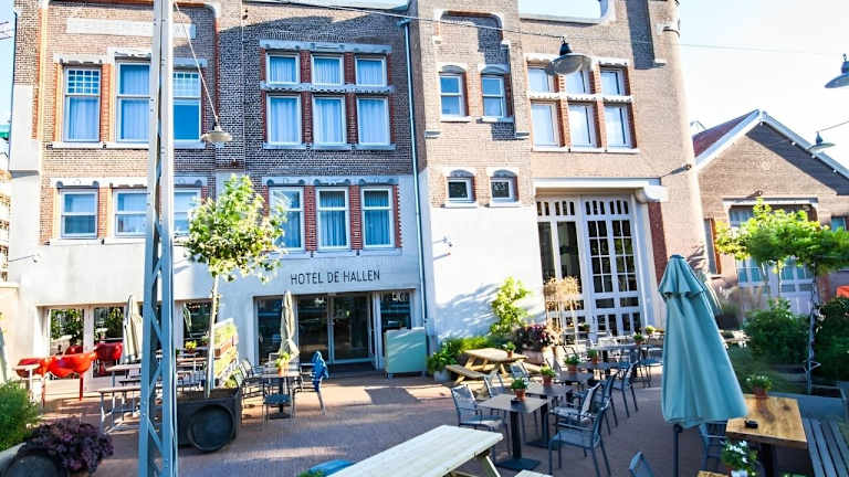 Das Hotel De Hallen wurde in einem ehemaligen Strassenbahndepot erbaut und verbindet urbanes Design mit kunstvollem Vintage-Stil. Der weitläufige Eingangsbereich beherbergt ein Restaurant, heimelige Loungebereiche sowie eine Bar mit einer Sonnenterrasse. Das Hotel ist als Nichtraucherhotel konzipiert und bietet einen 24-Stunden Rezeptionservice sowie Wäscheservice gegen Gebühr an.
