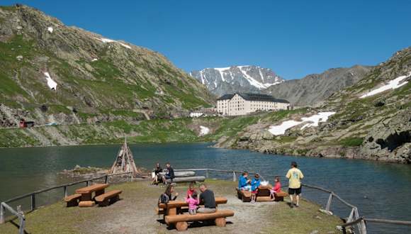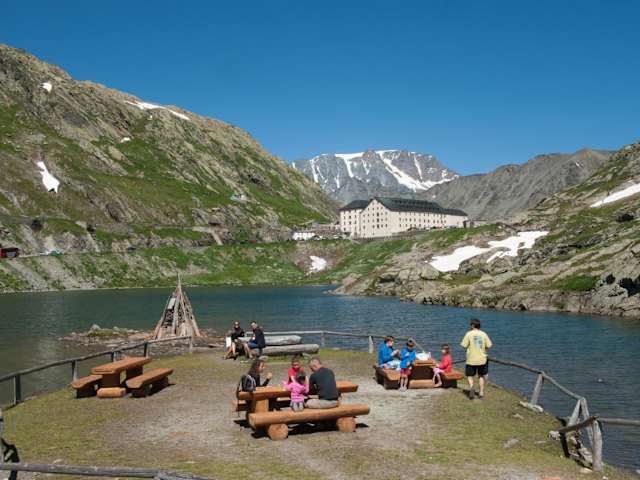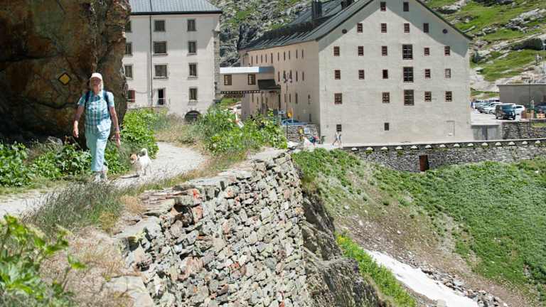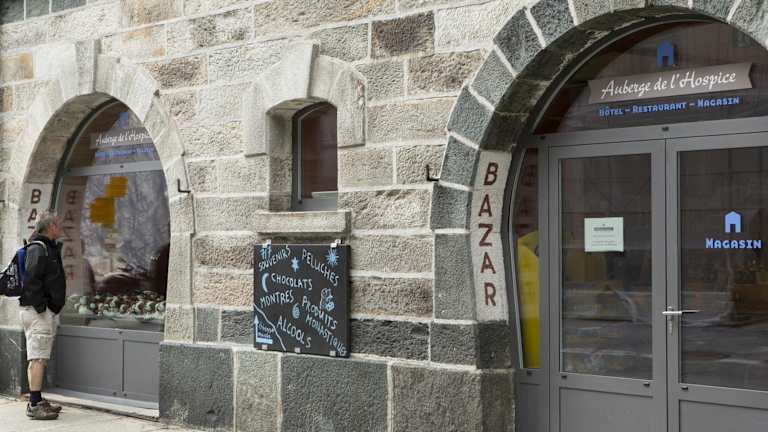 Die familiengeführte Auberge de l’Hospice hat im Jahr 2015 neu eingerichtete Zimmer, welche in warmen Farben gehalten und mit natürlichen Materialien ausgestattet sind. Ein regionales Geschichtsmuseum befindet sich in der obersten Etage. Zudem gibt es einen Laden, wo Gäste Souvenirs, kleine Bernhardiner-Figuren, Schweizer Schokolade und eine grosse Auswahl an Kunsthandwerk, Speisen und Getränken aus europäischen Klöstern erwerben können. Die Auberge ist nur von Juni bis Mitte Oktober geöffnet.