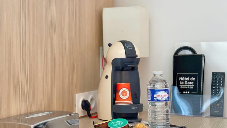 Das Hôtel De La Gare befindet sich in zentraler Lage in Quimper, nur 10 Gehminuten von der Innenstadt entfernt. Die Unterkunft ist bequem über die Autobahn N165 / E60 zu erreichen und bietet einen einfachen Zugang zu den umliegenden Sehenswürdigkeiten. Der SNCF-Bahnhof Quimper befindet sich in unmittelbarer Nähe, was das Hotel ideal für Reisende macht, die mit dem Zug anreisen möchten.