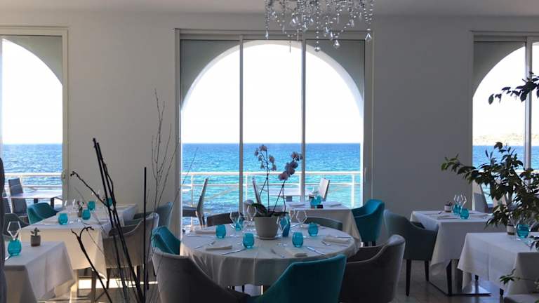 Der Tag beginnt mit einem reichhaltigen Frühstück, das im Speisesaal mit Panoramaterrasse serviert wird. Auf der schattigen Terrasse können Gäste bei einem Getränk entspannen.