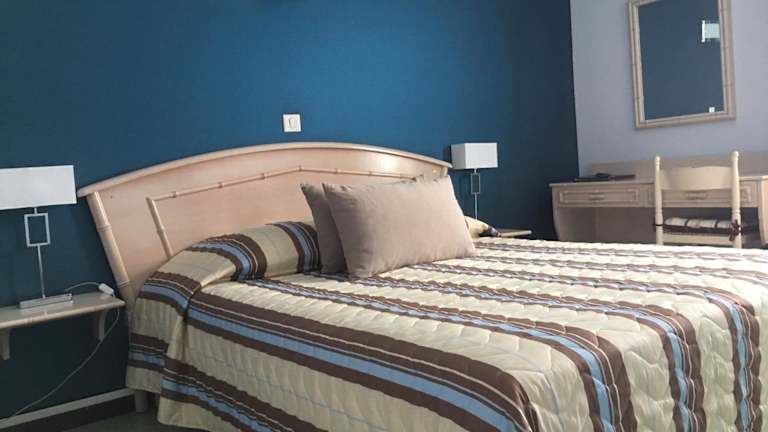 Das Hotel de la Plage Santa Vittoria befindet sich in einer ruhigen Lage zwischen dem Meer und den Bergen in Korsika, was eine entspannte Atmosphäre bietet.