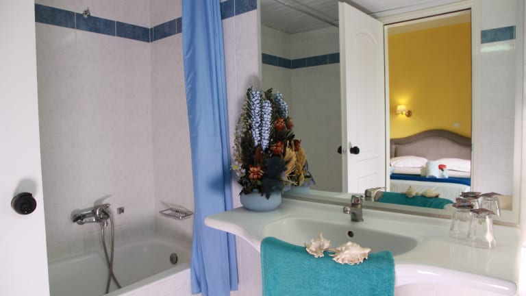 Die klimatisierten Zimmer verfügen jeweils über einen Balkon oder eine Terrasse mit direktem oder seitlichem Meerblick sowie einen Kühlschrank und eine Tee-/Kaffeemaschine. Die Unterkünfte sind mit einem Doppelbett, einem Queensize-Bett oder einem Kingsize-Bett ausgestattet. Es gibt auch Baby- und Zustellbetten auf Anfrage. Zu weiteren Annehmlichkeiten gehören ein Fernseher, ein Radio, WiFi ohne Gebühr und ein eigenes Badezimmer mit Dusche und Badewanne.