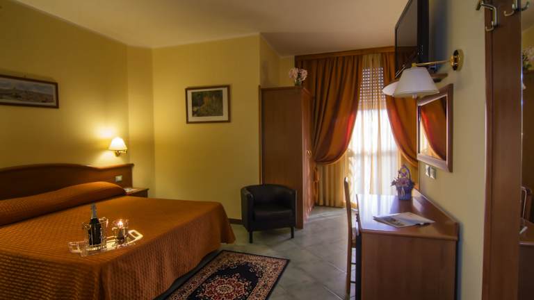 Das Hotel degli Amici bietet 39 Zimmer und wurde 2004 eröffnet. Es hat einen Aufzug sowie Behindertengerechte Einrichtungen. Zu den Dienstleistungen gehören eine Garderobe, Gepäckaufbewahrung, ein sicherer Bereich und ein Tourdesk für Ausflüge. Ein schöner Garten mit Pavillons und ein Spielplatz für Kinder sind ebenfalls vorhanden. Bis zu einem Konferenzraum stehen die nötigen Annehmlichkeiten zur Verfügung. Zudem gibt es rund um die Uhr geöffneten Zimmerservice.