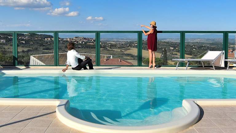 Das Hotel Del Buono Centro Benessere befindet sich im Kurort Chianciano Terme, nur wenige Schritte von den Thermalbädern entfernt. Die Umgebung bietet einen wunderschönen Blick auf die drei Seen von Chiusi, Montepulciano und Trasimeno. Siena ist in etwa 1 Autostunde erreichbar.