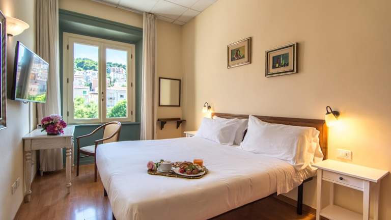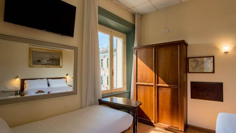 Die Zimmer im Hotel della Vittoria sind klimatisiert und bieten modernen Komfort. Jedes Zimmer ist mit einem Flachbild-TV, Parkettboden und einem eigenen Bad mit Dusche ausgestattet. Genießen Sie den Komfort und die Gemütlichkeit dieser charmanten Unterkunft.