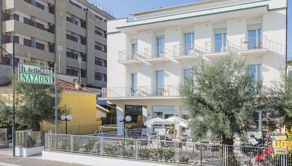 Im Hotel Delle Nazioni fühlen Sie sich auch im Urlaub wie zu Hause. Und hinzu kommt...dass der Strand so nah ist, dass man barfuß dort hinlaufen kann. Das 3-Sterne Hotel "Delle Nazioni" in Bellaria erwartet Sie mit Höflichkeit und Gastfreundschaft - welche alle Hotels der Valentini Village Group charakterisieren. Das interessante und aussergewoehnliche ist die Lage des Hotels Delle Nazioni: Mit frontalem Meerblick und direkt an der Strandpromenade von Bellaria in Via Cristoforo Colombo ist es eine Raritaet unter den Hotels.