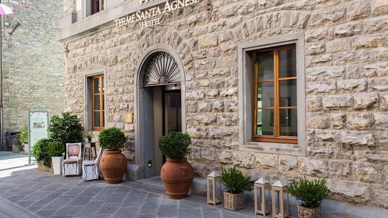 Das Hotel Delle Terme Santa Agnese in Bagno di Romagna bietet eine ideale Lage inmitten der Apenninen und ist perfekt für einen erholsamen Aufenthalt geeignet. Genießen Sie kostenfreie Thermalpools, eine Sonnenterrasse und ein breites Angebot an Wellnessanwendungen. Das Restaurant Sapori di Romagna verwöhnt Sie mit köstlichen Spezialitäten aus der Emilia-Romagna. Die geräumigen und eleganten Zimmer sind mit modernen Annehmlichkeiten ausgestattet und bieten Ihnen Komfort und Entspannung. Das Hotel ist der ideale Ausgangspunkt für Wanderungen und Radtouren im nahegelegenen Parco Nazionale delle Foreste Casentinesi.