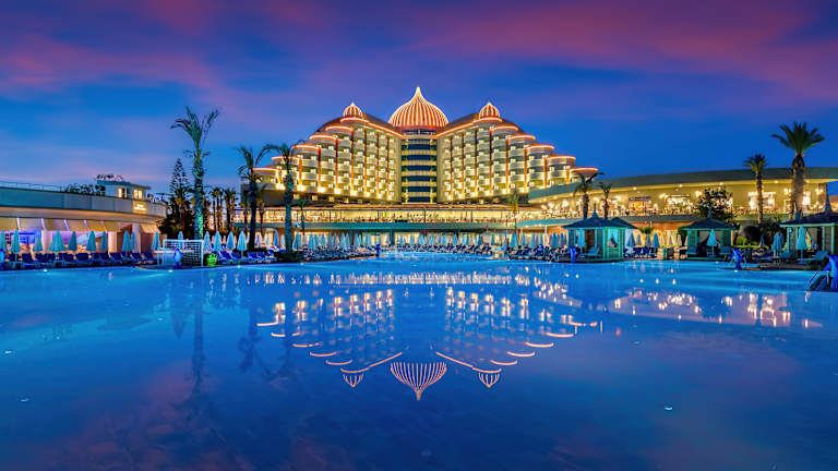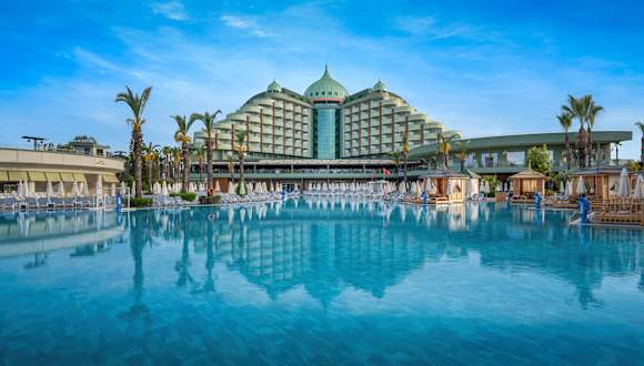 Leistungen die im Ultra All Inclusive Preis enthalten sind Offenes Buffet; Frühstück, Spätfrühstück, Mittagessen, Abendessen, Mitternachtssnack im Palm Sport & Snack Pub), 7 a la carte Restaurants sind pro Aufenthalt 1 mal kostenlos (Reservierung erforderlich), Lokale alkoholische und alkoholfreie Getränke sowie einige importierte (Lobby Bar, Joia Bar & Disco), Die Minibar wird täglich mit Bier, Cola, Fanta, Ice Tea, Mineralwasser, Wasser, Fruchtsaft, Schokolade, Cracker, Chips aufgefüllt, Safe im Zimmer, 2 Tennisplätze, Ausrüstung und Beleuchtung (mit Reservierung und gegen Kaution), Türkischer Hamam, Sauna, Dampfbad, Fitness Center, Aerobic, Wassergymnastik, Gymnastik, Tischtennis, Step, Kino, Die Nutzung des Relaxpools ist für Gäste unter 15 Jahren untersagt (in der Hochsaison), Hallenbad und Whirlpool, Haupt Pool, Kinder Pool, Pool mit Rutschen, Relax Pool, Die Öffnungszeiten der Pools können sich ändern und sind wetterabhängig, Sonnenschirme, Liegen, Auflagen, Badetücher (wetterbedingt), Tagsüber Sportturniere und Poolspiele, am Abend Revueshows, Sketch – und Animationsshow, Gelegentlich Live Musik und Disko, Im Zimmer und Lobby WiFi, Lunapark Offener Parkplatz. Leistungen die nicht im Ultra All Inclusive Preis enthalten sind Telefon, Fax, Friseur, Game Room, Billard, Bowling, Tischfussball, Computerspiele, Kosmetiksalon, Kleopatra Milchbad, Jacuzzi in Spa, diverse Massagearten, Peeling mit „Anti Stress’’Anwendungen, Internet Cafe, Wäscherei – und Bügelservice, Gesundheitsdienst und Arzt (zwischenzeitlich), 24 Stunden Zimmerservice Motorisierte und nicht motorisierte Wassersportarten Notizen: In den Restaurants und Bars werden die Getränke an die Tische serviert, kann auch von den Gästen selbst genommen werden. Für die Gäste unter 18 Jahren werden keine alkoholischen Getränke ausgeschenkt. Alkoholische Getränke werden nicht in Flaschen und nicht beim Frühstück serviert. Das Tragen eines Plastikarmbandes ist erforderlich. Es sind keine Haustiere gestattet. Am Pier sowie in allen Ausseneinrichtungen wird wetterabhängig Service geleistet. Die Ausleihe von Rollstuhl und Babywagen sind an der Rezeption auf Anfrage gegen Kaution möglich. Kreditkarten: Visa und Master Card