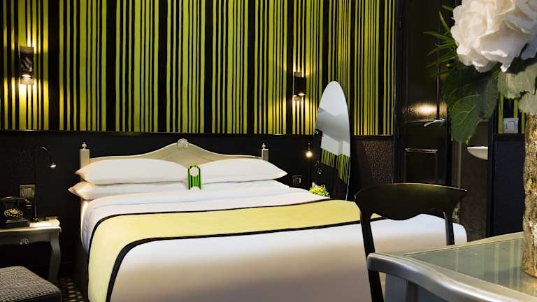 Es stehen verschiedene Zimmertypen zur Verfügung, darunter Doppelzimmer mit Blick auf den Innenhof oder die Stadt. Alle Zimmer sind Nichtraucherzimmer und verfügen über eine Klimaanlage, Teppichboden, einen Flachbild-TV, ein Telefon sowie ein eigenes Badezimmer mit Dusche und Haartrockner. Zu den Annehmlichkeiten gehören zusätzlich ein Safe, ein Schreibtisch, eine Minibar mit kostenlosem Wasser, Internetzugang per WLAN, und einige Zimmer bieten eine Nespressomaschine.