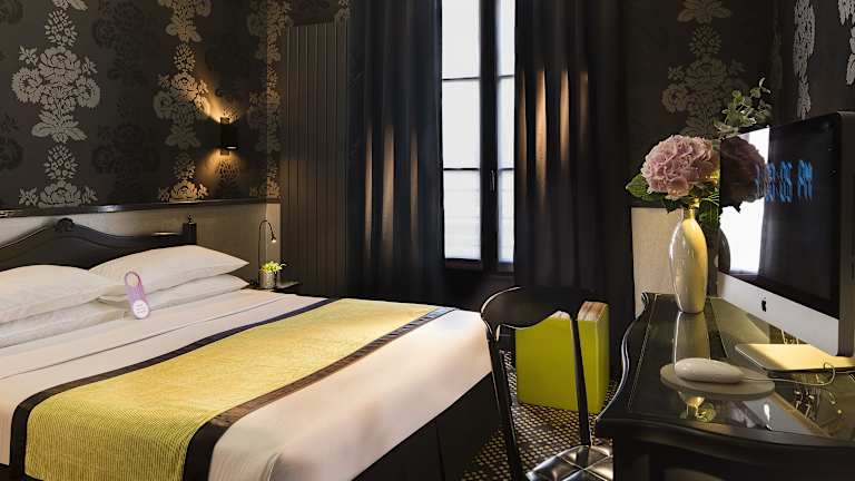 Das Hotel Design Sorbonne ist ein modernes Boutique-Hotel mit stilvollen Zimmern, die ein warmes Gefühl vermitteln. Die Zimmer sind in leuchtenden Farben gehalten und mit dicken Teppichen sowie modernen Stoffen ausgestattet. Es bietet ein grosszügiges Frühstücksbuffet, das in einem einladenden Salon serviert wird. WLAN ist im gesamten Hotel kostenfrei verfügbar. Das Haus ist ein Nichtraucherhotel und die Rezeption ist rund um die Uhr geöffnet.