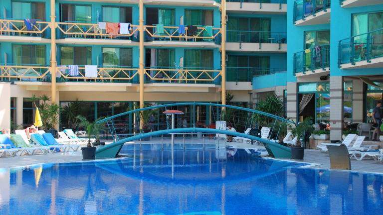 In zentraler Lage in Sonnenstrand liegt das Diamond Hotel, nur 250 m vom Meer entfernt. Hier fühlen sich besonders Familien und junge Gäste wohl, da zahlreiche Unterhaltungsmöglichkeiten in der Nähe liegen. Das Hotel Diamond verfügt über einen großzügigen Rezeptionsbereich, eine Lobbybar, ein Buffet-Restaurant mit offener Terrasse und eine ganz neue Snackbar. Freuen Sie sich auf gelegentliche Show-Koch-Einlagen und Themenabende zur Dinnerzeit. Die Aussenanlagen wurden im Jahr 2019 komplett renoviert und sind sehr hell und modern eingerichtet. Im Bereich des großen Außenpools finden Sie einen speziellen Bereich für Kinder sowie eine hübsche Poolbar. Die Liegen und Sonnenschirme am Pool nutzen Sie kostenlos.