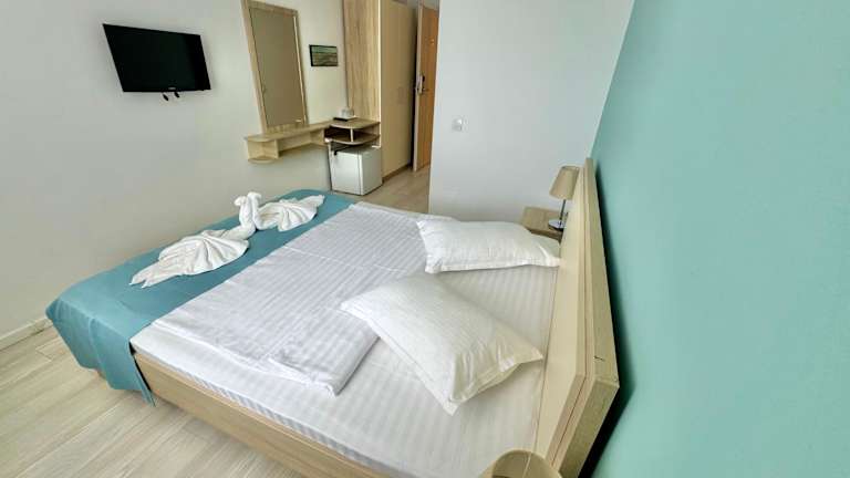 Die Zimmer sind mit Klimaanlage ausgestattet, die individuell regulierbar ist. Gäste haben die Möglichkeit, einen schönen Meerblick von Balkon oder Terrasse zu geniessen. Jedes Zimmer ist mit einem Kingsize-Bett, Telefon, TV-Gerät mit Satelliten-/Kabelempfang sowie kostenlosem Wifi ausgestattet. Die Badezimmer sind mit einer Dusche und Badewanne eingerichtet und bieten Kosmetikartikel sowie eine Auswahl an Handtüchern. Es stehen auch Familien- und Nichtraucherzimmer zur Verfügung.