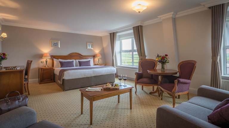 Das Dingle Skellig Hotel bietet 113 geräumige Zimmer auf 2 Etagen. Jedes Zimmer verfügt über einen eigenen Balkon, ein komfortables Doppelbett, einen Safe, einen Schreibtisch, einen Kühlschrank, eine Tee- und Kaffeemaschine sowie kostenloses WLAN. Die Badezimmer sind mit einer Dusche und einer Badewanne ausgestattet und bieten Haartrockner, Bademäntel und Hausschuhe. Rollstuhlgerechte Zimmer sind verfügbar und Familienzimmer bieten zusätzlichen Platz für Familien mit Kindern.