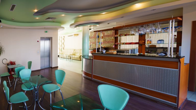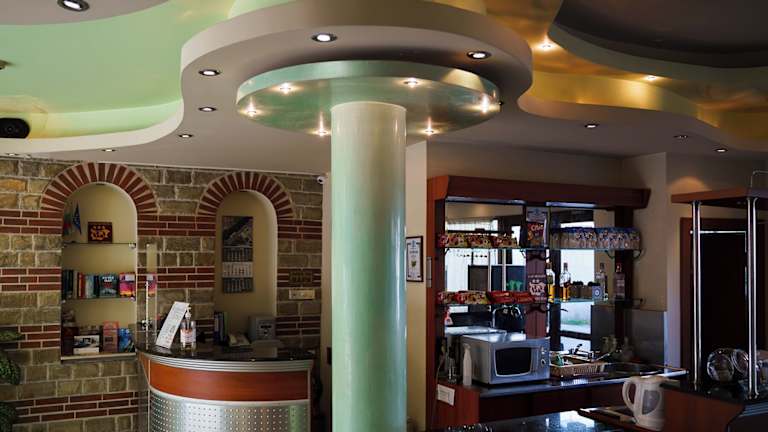 Im Hotel Dionis können Gäste ein schmackhaftes Frühstück im Frühstückssaal oder im Café geniessen. Die gemütliche Hotelbar serviert eine Auswahl an Getränken, die von angenehmer Musik begleitet wird.