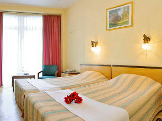Die Zimmer sind mit einer Klimaanlage, individuell steuerbarer Heizung, Balkon oder Terrasse, Queensizebett und Sofabett ausgestattet. Sie bieten einen Safe, eine Minibar, einen Schreibtisch und einen Minikühlschrank. Technisch ausgestattet sind die Zimmer mit einem Telefon mit Direktwahl, TV mit Satellitenempfang und kostenlosem Wifi. Die Badezimmer verfügen über Dusche und Badewanne sowie Haartrockner und Telefon. Familien- und Nichtraucherzimmer sind ebenfalls verfügbar.