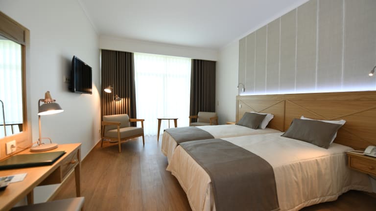 Die Doppelzimmer sind Nichtraucherzimmer und bieten Platz für bis zu zwei Gäste. Sie sind mit extra langen Betten, Klimaanlage, Minibar, WLAN, Flatscreen-TV und einem eigenen Bad mit Badewanne ausgestattet. Der Balkon oder die Terrasse sind mit Sitzgelegenheiten ausgestattet und ermöglichen den Blick auf die Umgebung.