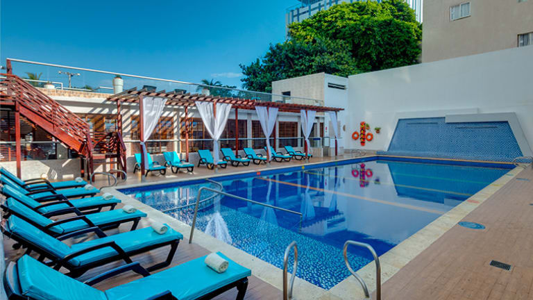 Das Hotel Dorado Plaza befindet sich in Bocagrande, etwa 5 Minuten vom historischen Zentrum von Cartagena entfernt. Der internationale Flughafen Rafael Nunez ist in nur etwa 10 Minuten erreichbar. In der Umgebung gibt es Strände mit Kieselsteinen, felsigen Abschnitten und Sandstränden.