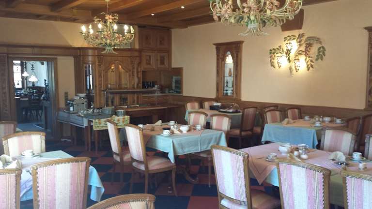 Jeden Morgen wird im stilvollen Frühstücksraum ein Frühstücksbuffet serviert. Zudem können Gäste regionale deutsche Küche im hoteleigenen Restaurant geniessen.