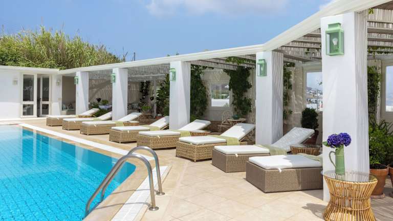 Das Hotel Dorion in Ornos auf Mykonos bietet eine ideale Lage nur 200 m vom Strand entfernt und ist ein perfekter Ort für einen entspannten und stilvollen Urlaub. Die Zimmer im kykladischen Stil bieten einen atemberaubenden Blick auf die Ägäis vom eigenen Balkon aus. Genießen Sie ein reichhaltiges Frühstück und nutzen Sie den Pool und das WLAN. Das Hotel bietet auch weitere Annehmlichkeiten wie eine Whirlpool-Badewanne in einigen Zimmern, eine Poolbar und eine Bibliothek. Für zusätzlichen Komfort können Sie Yoga-Pilates, persönliches Training und Massagen buchen. Erkunden Sie die berühmten Strände von Paradise, Super Paradise und Elia, die bequem mit dem Boot von Ornos aus erreichbar sind. Die lebhafte Stadt Mykonos mit ihren Bars und Restaurants liegt ebenfalls in der Nähe. Kostenlose Parkplätze stehen zur Verfügung.