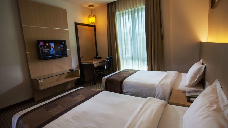 Die stilvoll eingerichteten Zimmer sind mit Flachbild-TV, Teppichböden sowie einem eigenen Bad mit Warmwasserdusche ausgestattet. Auf Anfrage steht ein Bügeleisen/-brett zur Verfügung. Die Zimmer sind schallisoliert und bieten Bequemlichkeiten wie Klimaanlage sowie Zugang mit Schlüsselkarte.