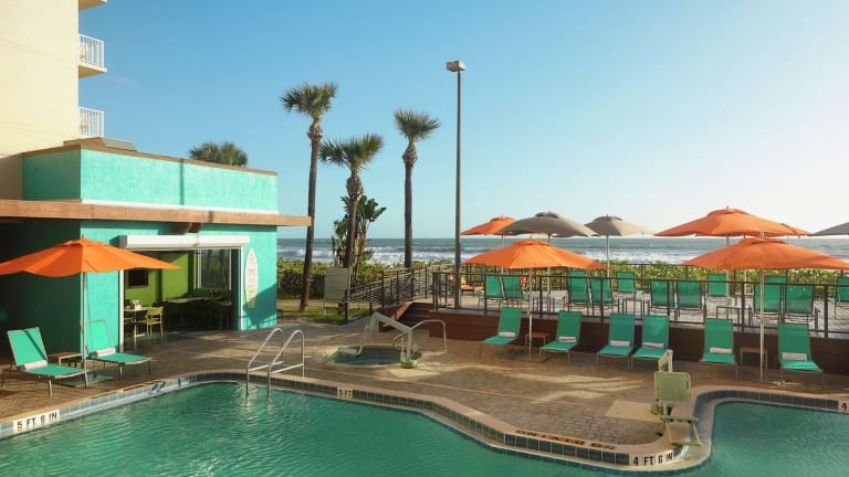 Das Hotel befindet sich in Melbourne, nur wenige Minuten entfernt von Einkaufs- und Restaurantmöglichkeiten. In der Nähe sind Sehenswürdigkeiten wie das Kennedy Space Center, Port Canaveral, der Ron Jon Surf Shop, der Andretti Thrill Park sowie das Maxwell C. King Center for the Performing Arts. Der Strand mit Kieselsteinen und Sand lädt zum Entspannen ein.