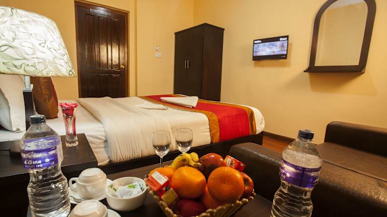Verbringen Sie Ihren Aufenthalt im Hotel Dream City in Kathmandu und genießen Sie kostenfreies WLAN sowie eine Vielzahl von Annehmlichkeiten. Entspannen Sie im Wellnesscenter, der Sauna oder im Restaurant des Hotels. Die Zimmer bieten modernen Komfort und einige haben einen herrlichen Ausblick auf die Berge, den Garten oder die Stadt. Ein eigenes Bad mit kostenfreien Pflegeprodukten und ein Haartrockner gehören zur Ausstattung. Freuen Sie sich auf den hoteleigenen Friseursalon, den Zimmerservice und die Möglichkeit, Ausflüge zu organisieren. Aktivitäten wie Fahrradfahren, Rafting, Kanufahren und Wandern können Sie in der Umgebung unternehmen. Ein Fahrradverleih steht ebenfalls zur Verfügung. Der Durbar-Platz und der Tempel Swayambhunath sind nur einen kurzen Spaziergang entfernt.