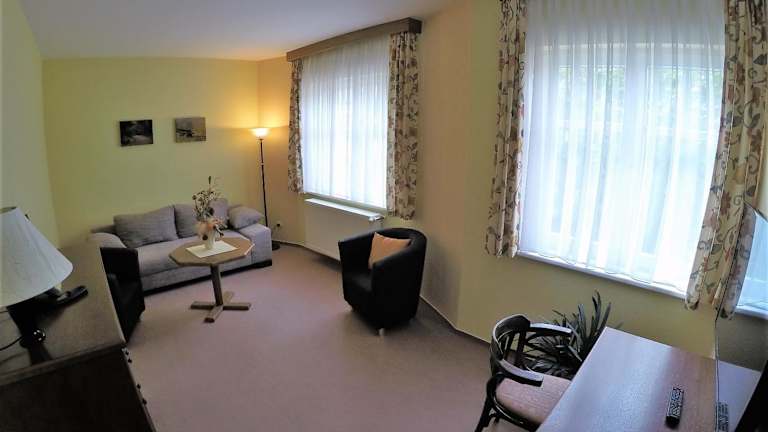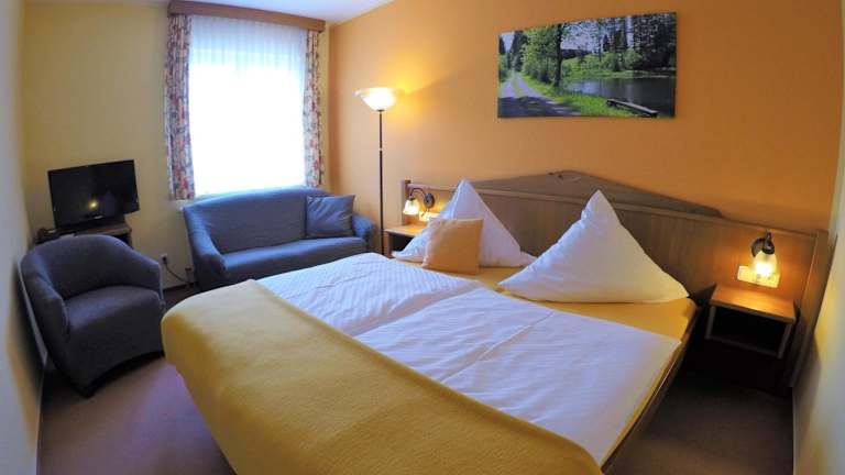 Im hauseigenen Restaurant, ausgestattet mit einem traditionellen Kachelofen und offenem Kamin, wird ein reichhaltiges Frühstücksbuffet serviert, das thüringische Spezialitäten umfasst. Auf Wunsch werden auch Mahlzeiten für spezielle Ernährungsbedürfnisse angeboten.