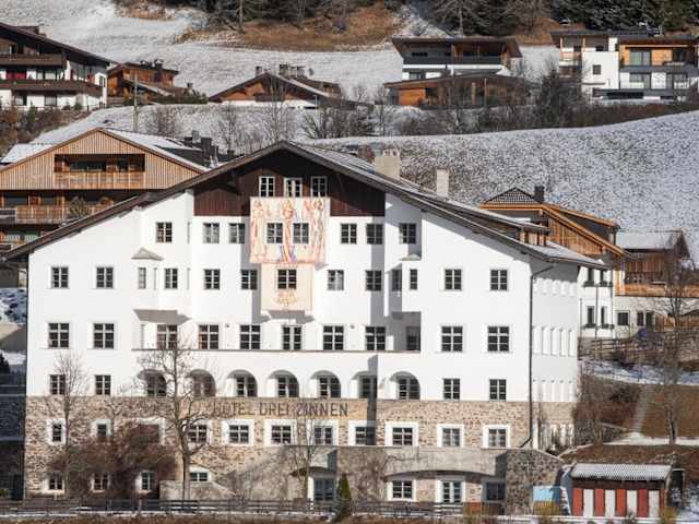 Das Hotel Drei Zinnen befindet sich in Sexten, in unmittelbarer Nähe der Gondelbahnen zum Skigebiet Rotwand, welche lediglich 300 m entfernt sind. Die Lage auf 1345 m am Rande des Naturschutzgebietes Sextner Dolomiten bietet Gästen einen atemberaubenden 360° Panoramablick auf diese zum UNESCO-Weltkulturerbe gehörenden Berge. Die Umgebung lädt im Sommer zu ausgiebigen Wanderungen und im Winter zu verschiedenen Wintersportaktivitäten ein.