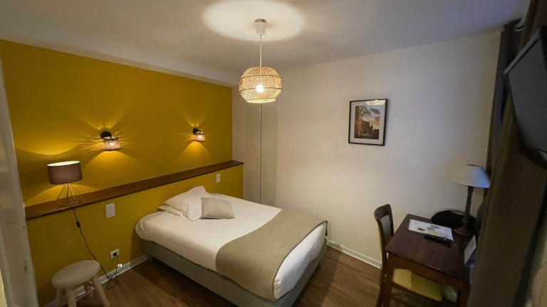 Das Hôtel du Château in Vitré bietet Ihnen eine zentrale Lage neben der mittelalterlichen Burg und nur wenige Gehminuten vom Bahnhof entfernt. Genießen Sie den kostenlosen WLAN-Zugang in den Zimmern, die mit Sat-TV und einem Schreibtisch ausgestattet sind. Einige Zimmer bieten einen herrlichen Blick auf das Schloss. Jedes Zimmer verfügt über ein eigenes Badezimmer mit Badewanne oder Dusche. Morgens erwartet Sie ein Frühstücksbuffet und an der Bar können Sie Getränke genießen. Die Lage des Hotels ermöglicht es Ihnen, die umliegende Region bequem zu erkunden, darunter das Zentrum von Rennes und den Golfclub Rochers Sévigné.