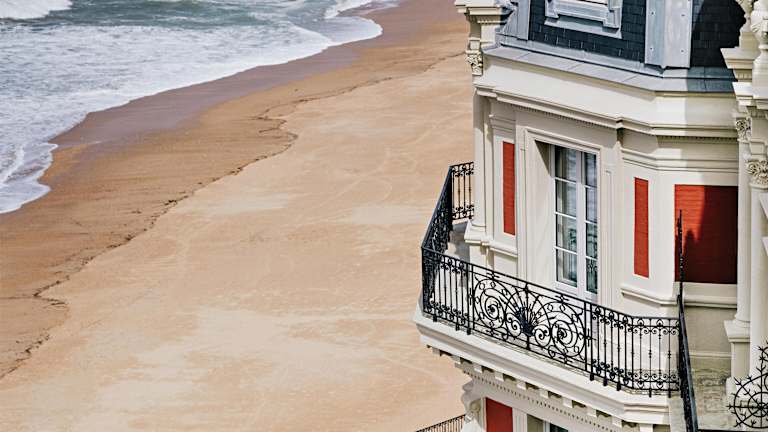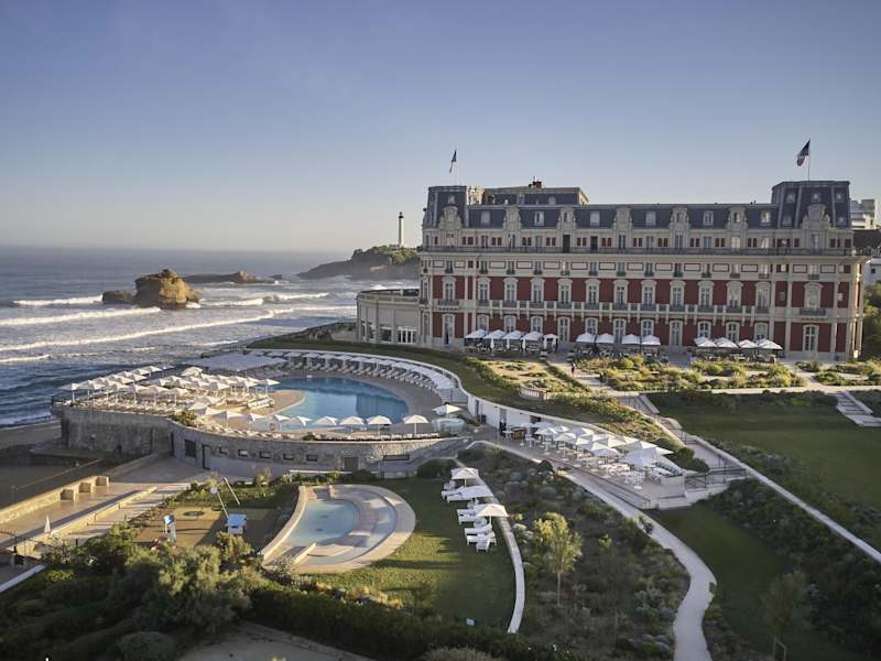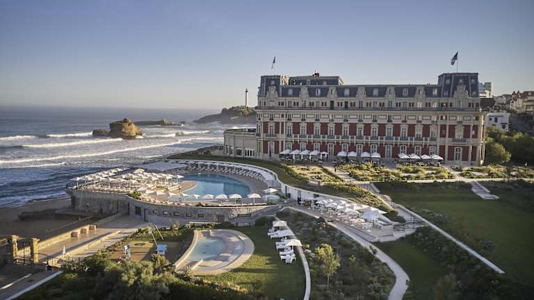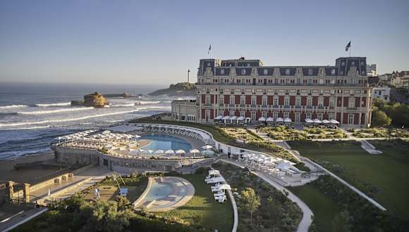 Das Hotel Du Palais liegt in Biarritz, überblickt den Hauptstrand La Grand Plage und ist in der Nähe zahlreicher Monumente sowie Naturschönheiten wie dem Jungfrauenfels und dem Meeresmuseum. In einem Umkreis von etwa 500 m befinden sich diverse Restaurants, Bars, Nachtclubs und öffentliche Verkehrsanbindungen. San Sebastian ist etwa 30 km entfernt und die Skiregion circa 90 km. Der Flughafen Biarritz liegt rund 4 km vom Hotel entfernt.