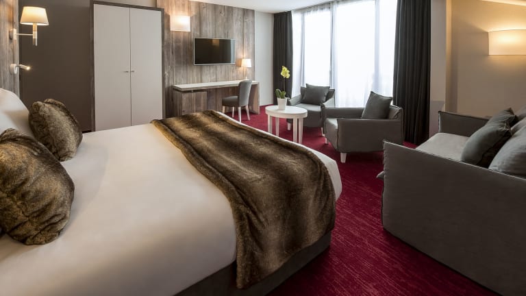 Die 94 Nichtraucherzimmer des Hotels sind über einen Aufzug erreichbar und verfügen über eine individuell steuerbare Heizung für angenehmen Komfort. Die meisten Zimmer verfügen über einen Balkon, der zusätzlichen Platz zum Entspannen bietet. Zur Ausstattung gehören ein Safe, eine Minibar, ein Telefon und WLAN. Das eigene Bad ist mit einer Dusche oder Badewanne und einem Haartrockner ausgestattet.