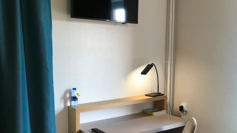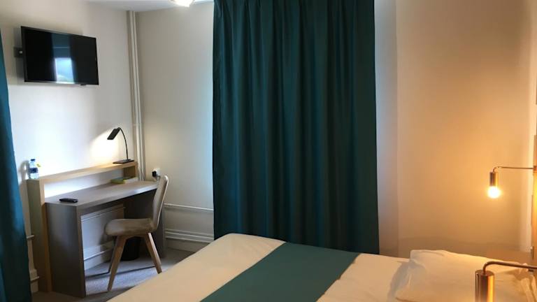 Die Zimmer im Hotel Du Pont sind mit einem Schreibtisch, einem TV und einem Haartrockner ausgestattet.