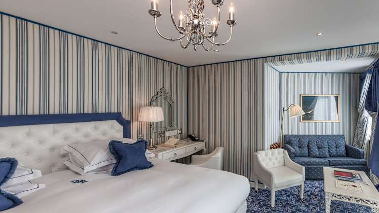 Die Zimmer sind stilvoll und modern eingerichtet und beinhalten Annehmlichkeiten wie einen Safe, eine Minibar und einen Schreibtisch. Einige Zimmer bieten eine Terrasse oder einen Balkon mit Meerblick. Die Badezimmer sind sowohl mit Dusche als auch mit Badewanne ausgestattet und umfassen Kosmetikartikel und Haartrockner. Weitere Ausstattungsmerkmale sind ein Fernseher, WiFi ohne Gebühr, eine Tee- und Kaffeemaschine sowie Hausschuhe. Rollstuhlgerechte Zimmer sind ebenfalls erhältlich.