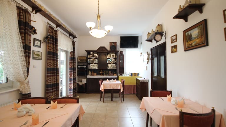 Das Frühstück wird jeden Morgen im Speisezimmer serviert und umfasst eine Auswahl an polnischen, regionalen und internationalen Gerichten. Es werden auch hausgemachte Kuchen und Getränke angeboten. Weitere Verpflegungsmöglichkeiten bestehen im Rahmen der hausinternen Einrichtungen.